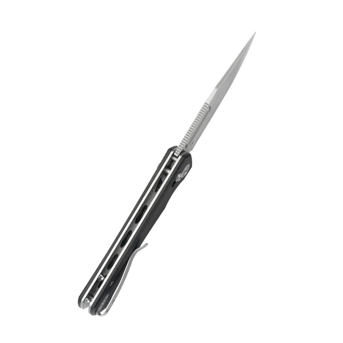 Le manche en G10 noir offre robustesse et adhérence. Le système de verrouillage crossbar lock assure une sécurité optimale et une ouverture ambidextre fluide. Le clip de poche tip-up réversible permet un port pratique, à gauche comme à droite.