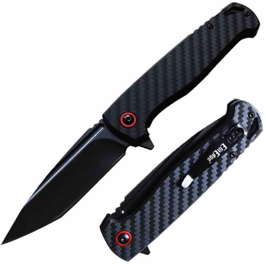 • Lot de 2 EE10B018TBK Couteau pliant ElitEdge | Lame Tanto Acier 8Cr13MoV | Manche fibre de carbone | Verrouillage Liner Lock - Livraison Gratuite