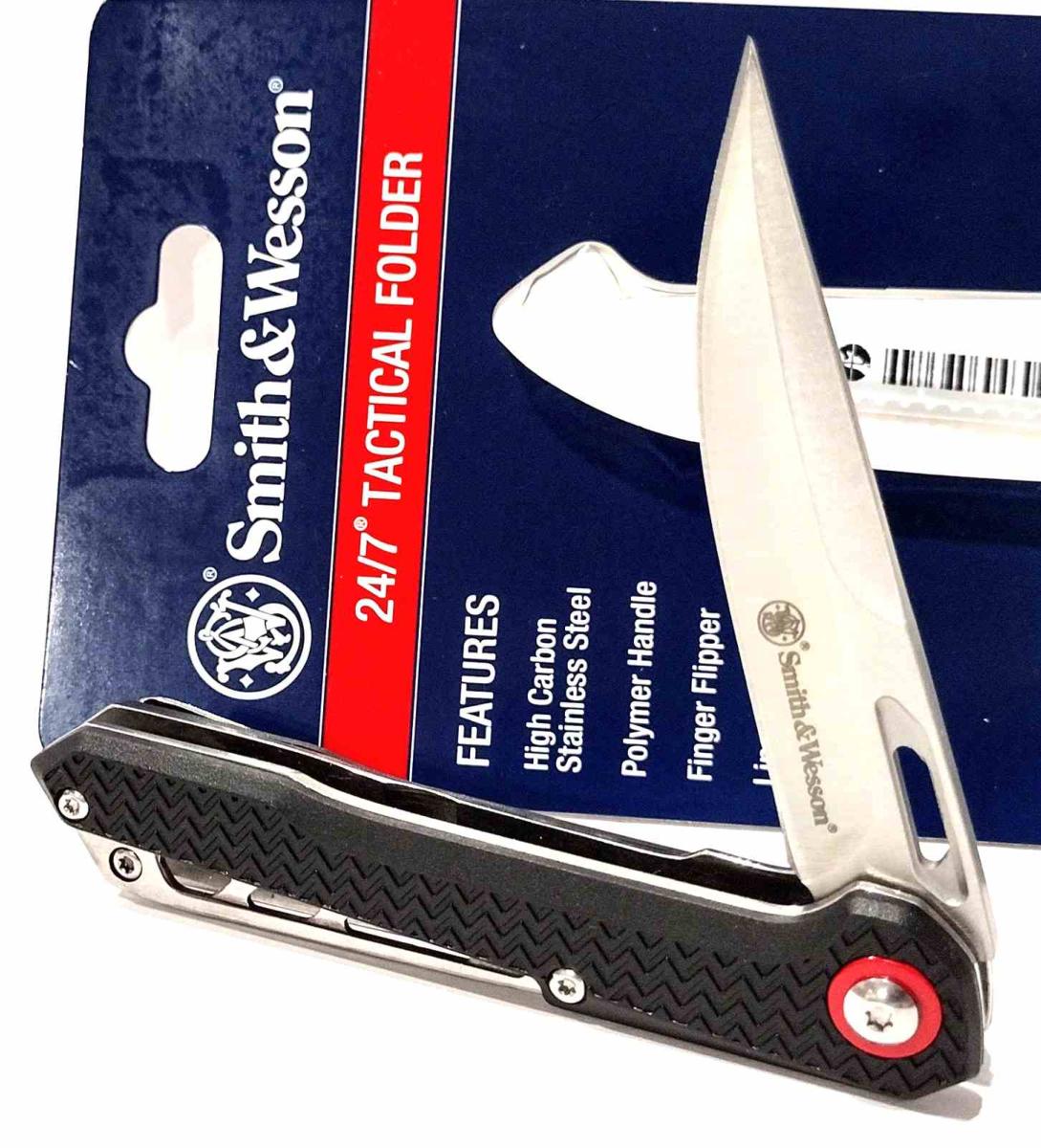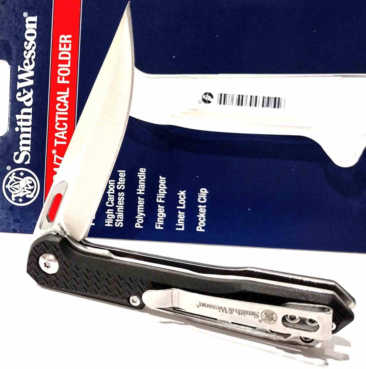 Le Smith & Wesson Tactical Linerlock SWP1227070 est un couteau pliant de 4" (10.16 cm) fermé, équipé d’une lame satinée de 3" (7.62 cm) en acier inoxydable haute teneur en carbone. Ce profil drop point est idéal pour les tâches polyvalentes, avec une bonne résistance à la corrosion et un tranchant durable.
