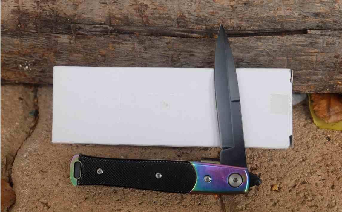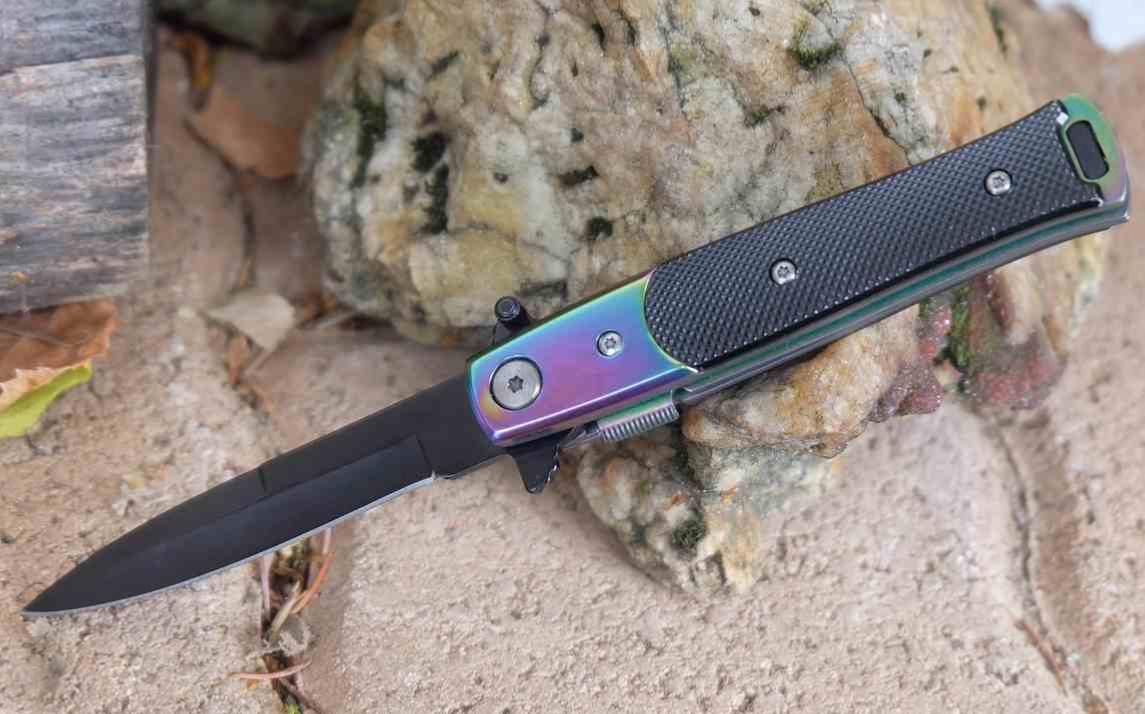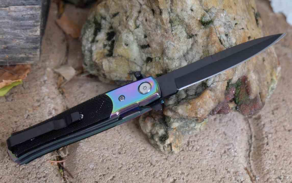 Son manche est entièrement en acier inox noir, avec un bolster spectrum qui ajoute une touche irisée et originale. Le couteau dispose d’un système de verrouillage linerlock, d’un thumb stud pour une ouverture rapide, d’un clip de poche, d’un trou pour dragonne et d’un talon prolongé. Livré en boîte.