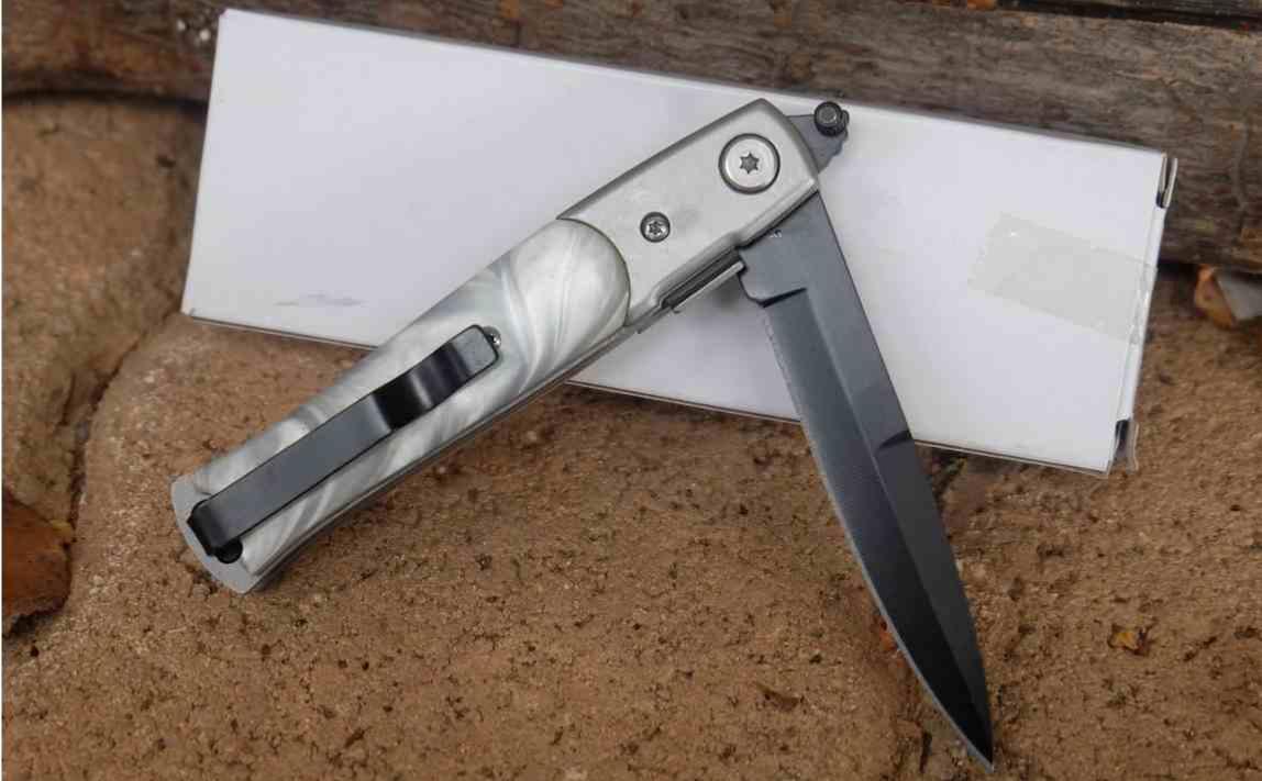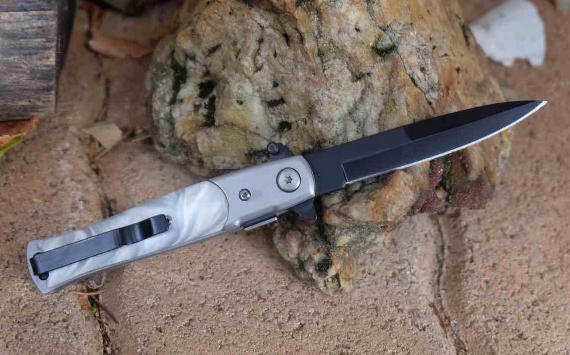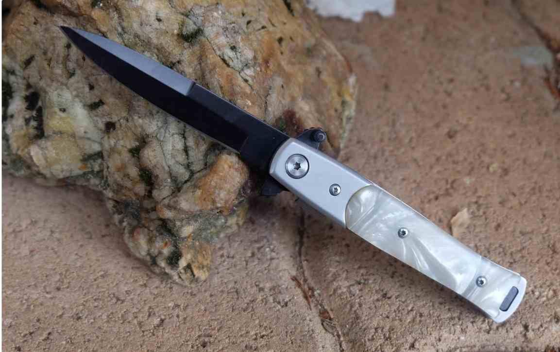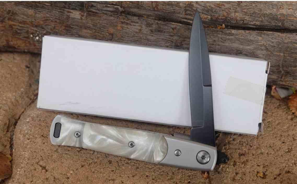 Son manche en acrylique blanc, rehaussé de mitres en acier inoxydable, lui confère un look raffiné et rétro. Il dispose d’un système de verrouillage linerlock, d’un thumb stud pour une ouverture rapide, d’un clip de poche, d’un trou pour dragonne et d’un talon prolongé. Livré en boîte.