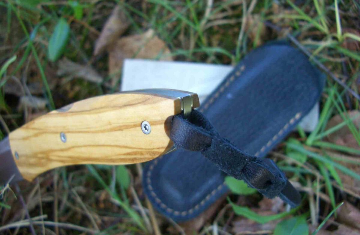 Le Manche Bois d'Olivier apporte une chaleur naturelle et un grain unique à chaque pièce, offrant une prise en main ergonomique grâce à son façonnage 3D. Pour optimiser le poids, les platines en acier sont fraisées, permettant au couteau d'afficher seulement 67 g sur la balance. Le système de verrouillage Back-lock assure une sécurité totale lors de l'utilisation. Ce modèle est livré avec un lacet en cuir tressé élégant et un étui en cuir noir de haute qualité.