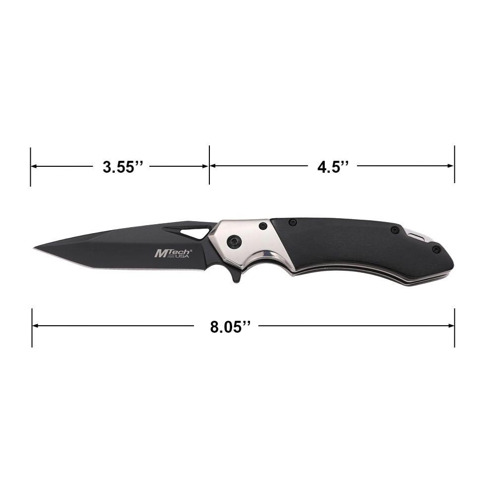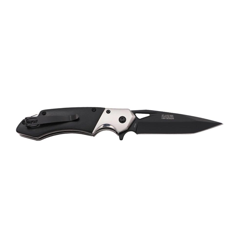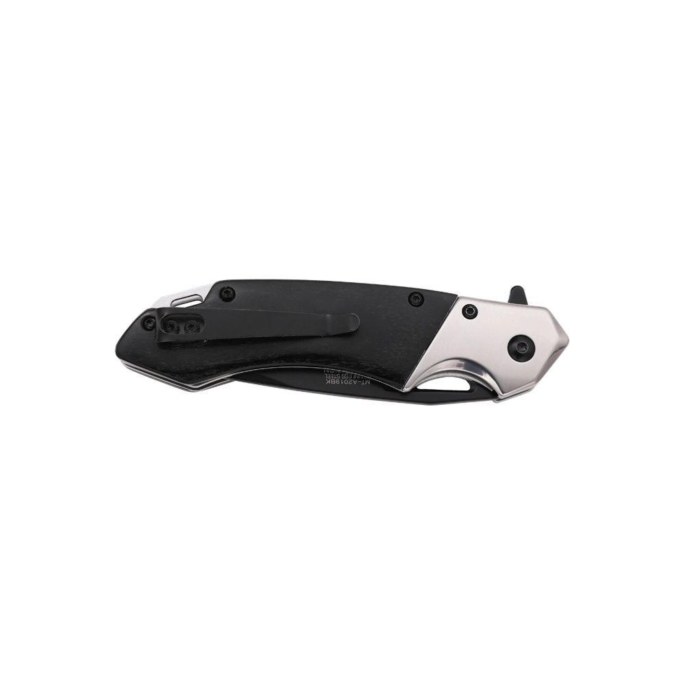 Le MTech MT-A2019BK est un couteau pliant à ouverture assistée conçu pour les amateurs d’EDC au style classique et tactique. Il est équipé d’une lame tanto en acier inoxydable 3Cr13MoV, avec une finition TiNite noire qui offre un effet satiné élégant et une bonne résistance à la corrosion. Le manche associe bois naturel et renforts en acier TiNite, pour une esthétique rustique et une prise en main solide. Le système flipper assisté permet une ouverture rapide, et le liner lock assure une fermeture sécurisée.