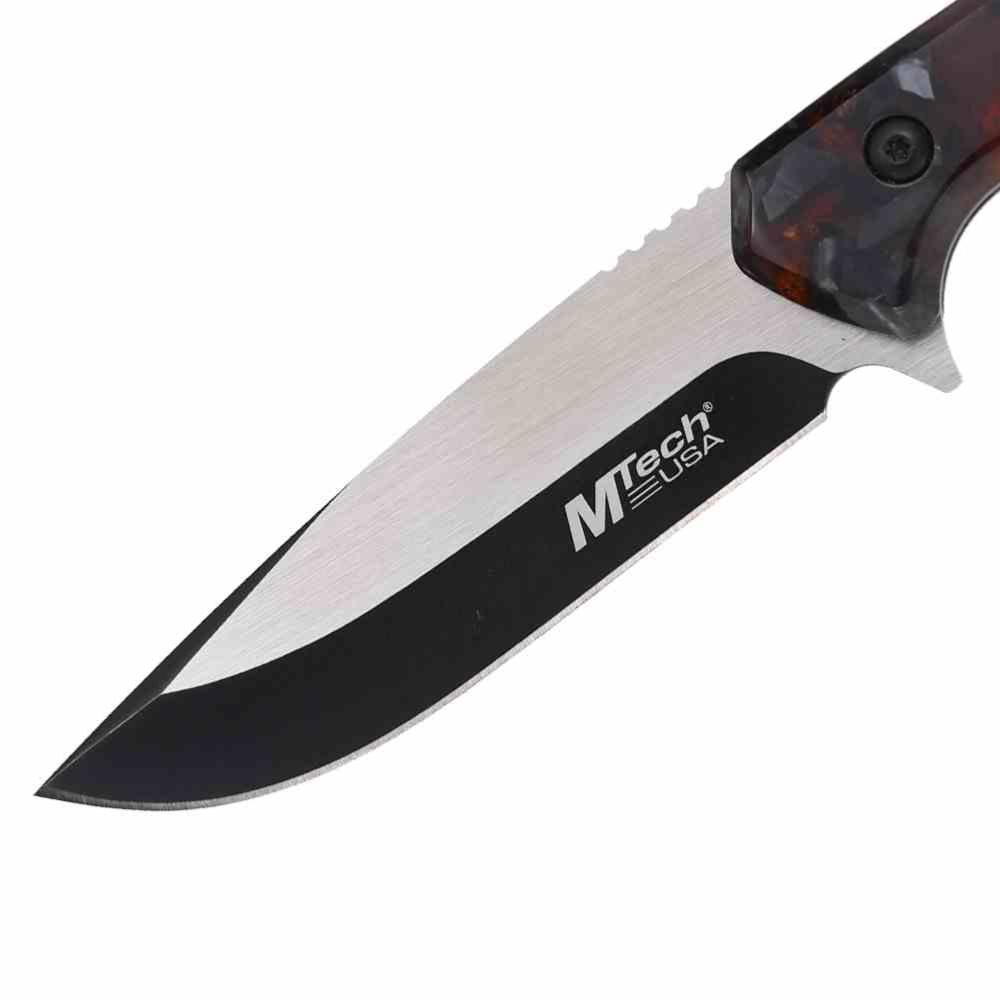 MTFIX006OG MTech – Couteau Lame Fixe Lame Acier 3Cr13MoV Manche Acrylique Rouge/Noir Etui ABS - Livraison Gratuite