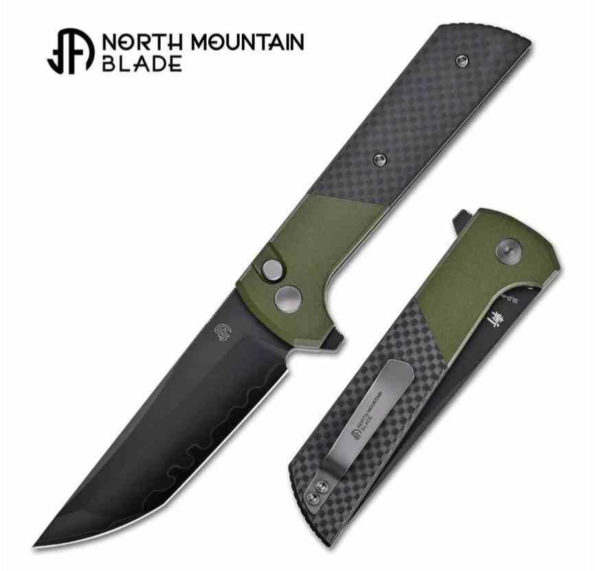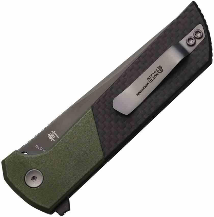 Le North Mountain Blade Chop 2 NMB2407SGCFD est une version haut de gamme du Chop 2, pensée pour l’EDC moderne et exigeant. Sa lame tanto en acier SLD‑Magic San Mai (3 couches forgées à chaud) de 9 cm bénéficie d’un traitement différentiel avec ligne de trempe Hamon et une finition DLC (Diamond‑Like Carbon) noire, offrant une dureté d’environ HRC 60‑62 et une résistance exceptionnelle à l’usure.