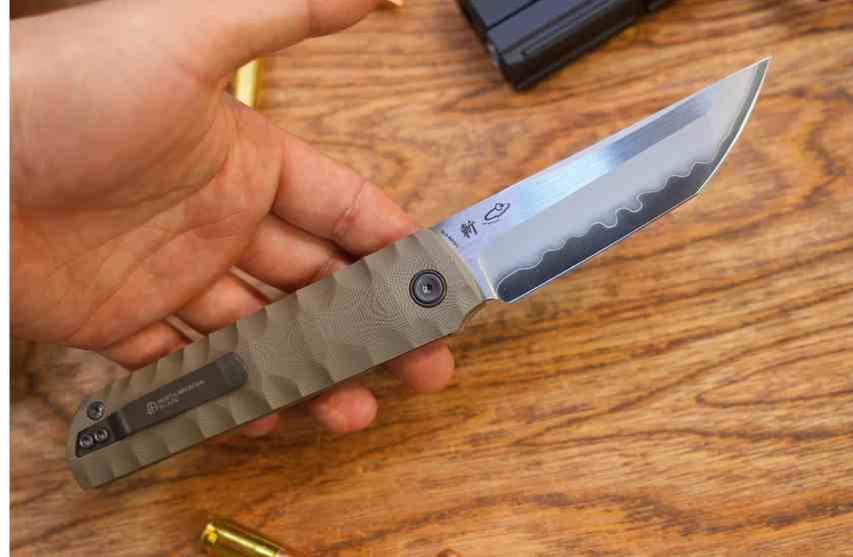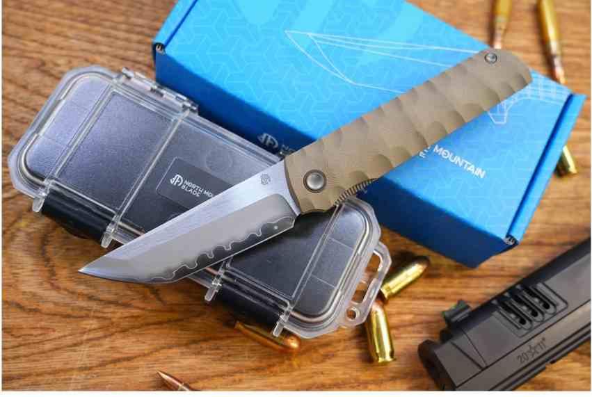Description de l’article : Le North Mountain Blade Kick Stop Chop Plus est un couteau pliant tactique imposant qui repousse les limites du design traditionnel japonais. Cette version "Plus", plus généreuse que le Chop classique, a été pensée pour ceux qui recherchent un outil robuste et polyvalent, parfaitement adapté aux exigences du budcraft et des activités de plein air. Sa lame Tanto, forgée en acier semi-inoxydable SLD-Magic, se distingue par une finition satinée élégante et une géométrie de coupe redoutable. Ce modèle se dote d'un manche en G10 Khaki avec une texture sculptée en 3D pour une adhérence supérieure. Le véritable coup de génie réside dans son système d'ouverture "Kick Stop" conçu par Lee Williams : un flipper caché qui disparaît une fois la lame déployée, préservant ainsi l'ergonomie parfaite de l'outil.