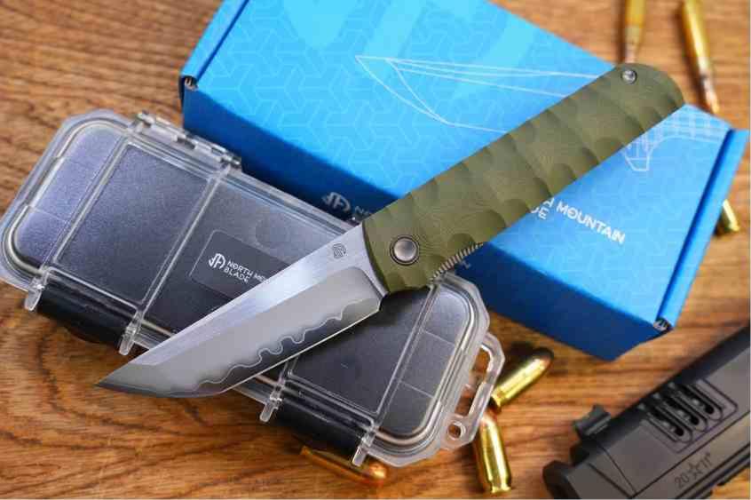 Description de l’article : Le North Mountain Blade Kick Stop Chop Plus est un couteau pliant tactique imposant qui repousse les limites du design traditionnel japonais. Cette version "Plus", plus généreuse que le Chop classique, a été pensée pour ceux qui recherchent un outil robuste et polyvalent, parfaitement adapté aux exigences du budcraft et des activités de plein air. Sa lame Tanto, forgée en acier semi-inoxydable SLD-Magic, se distingue par une finition satinée élégante et une géométrie de coupe redoutable. Ce modèle se dote d'un manche en G10 vert (Green) avec une texture sculptée en 3D pour une adhérence supérieure. Le véritable coup de génie réside dans son système d'ouverture "Kick Stop" conçu par Lee Williams : un flipper caché qui disparaît une fois la lame déployée, préservant ainsi l'ergonomie parfaite de l'outil.