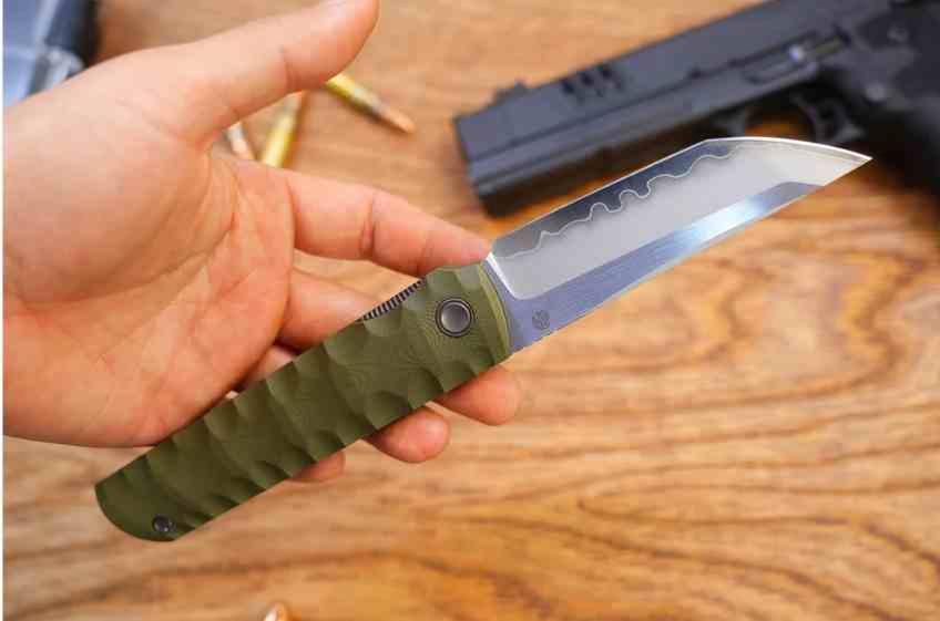 Ergonomie et Grip : Le manche en G10 vert sculpté offre une texture antidérapante efficace, garantissant une prise en main ferme et sécurisante, même dans des conditions humides lors de vos sorties de survie.