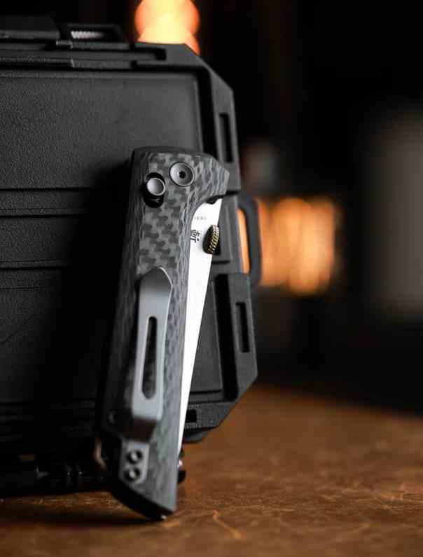 Le manche est ici conçu en Carbon Fiber (Fibre de Carbone), offrant un aspect haut de gamme, une légèreté accrue et une robustesse exceptionnelle. La grande nouveauté de cette série réside dans son mécanisme Crossbar Lock ultra-durable, conçu pour résister à un usage intensif tout en offrant une action fluide et ambidextre. Pour une polyvalence maximale, ce modèle intègre un clip de poche réversible et un trou pour lanière dédié.