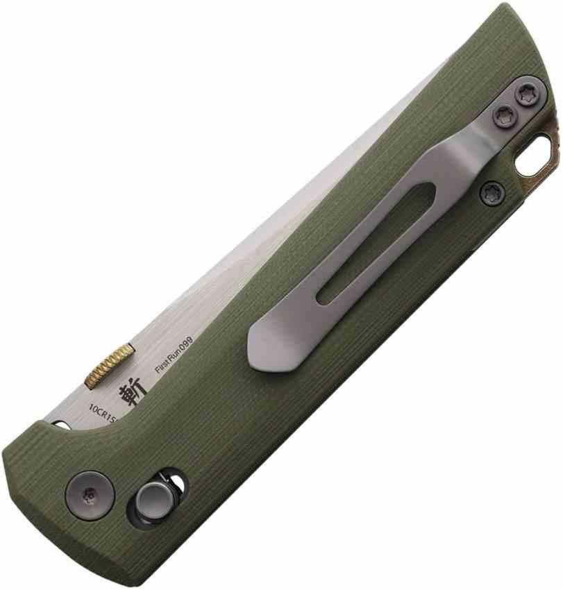 Le manche en Green G10 adopte un usinage Frag Pattern pour un grip total. La grande nouveauté réside dans son mécanisme Crossbar Lock ultra-durable, conçu pour résister à un usage intensif tout en offrant une action fluide et ambidextre. Pour une polyvalence maximale, ce modèle intègre un clip de poche réversible et un trou pour lanière dédié.