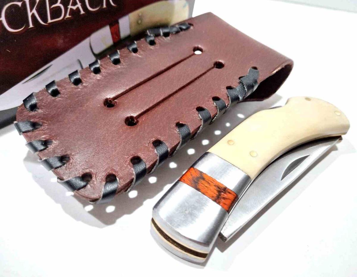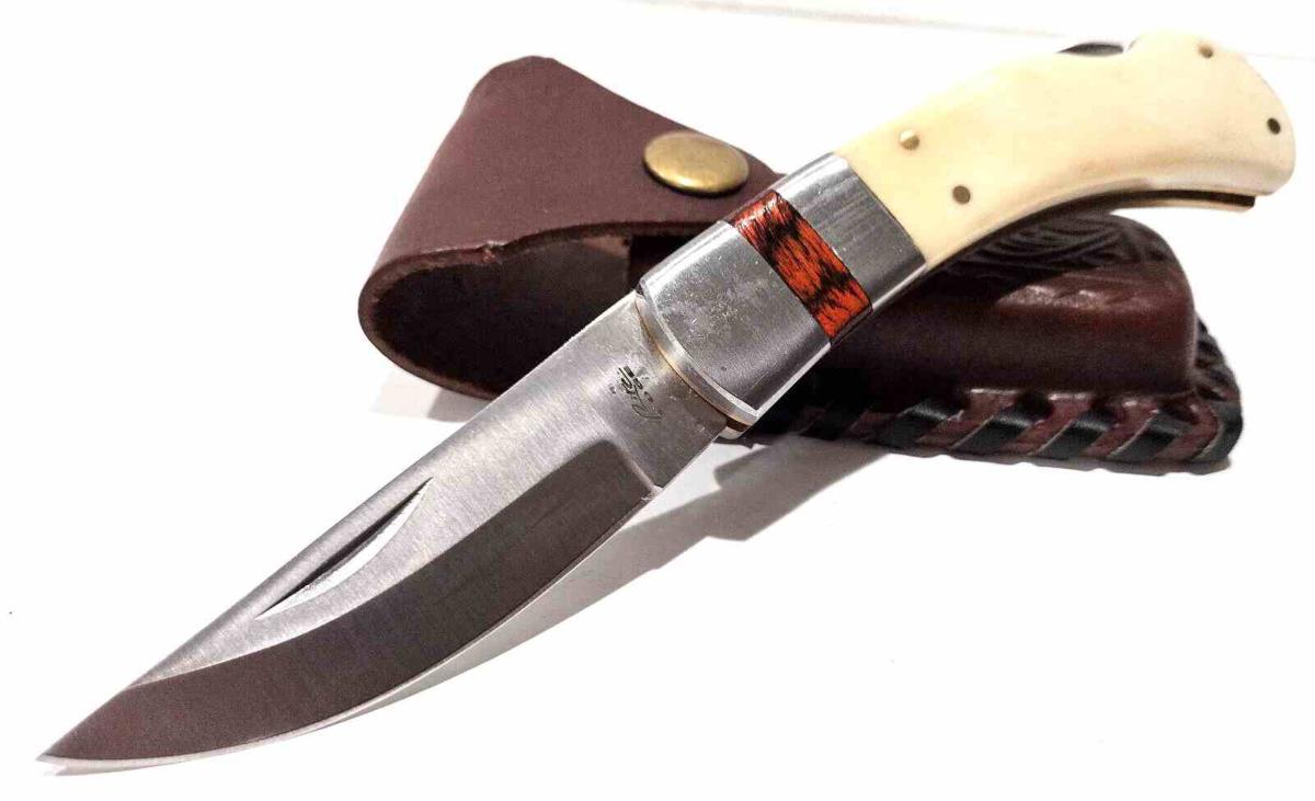 Le manche en os blanc poli apporte une touche d’élégance classique, renforcée par une mitre unique en acier inoxydable. Le format compact (101 mm fermé) permet un port discret en poche ou à la ceinture grâce à l’étui en cuir brun inclus. Le verrouillage lockback assure une sécurité fiable sans mécanisme complexe.