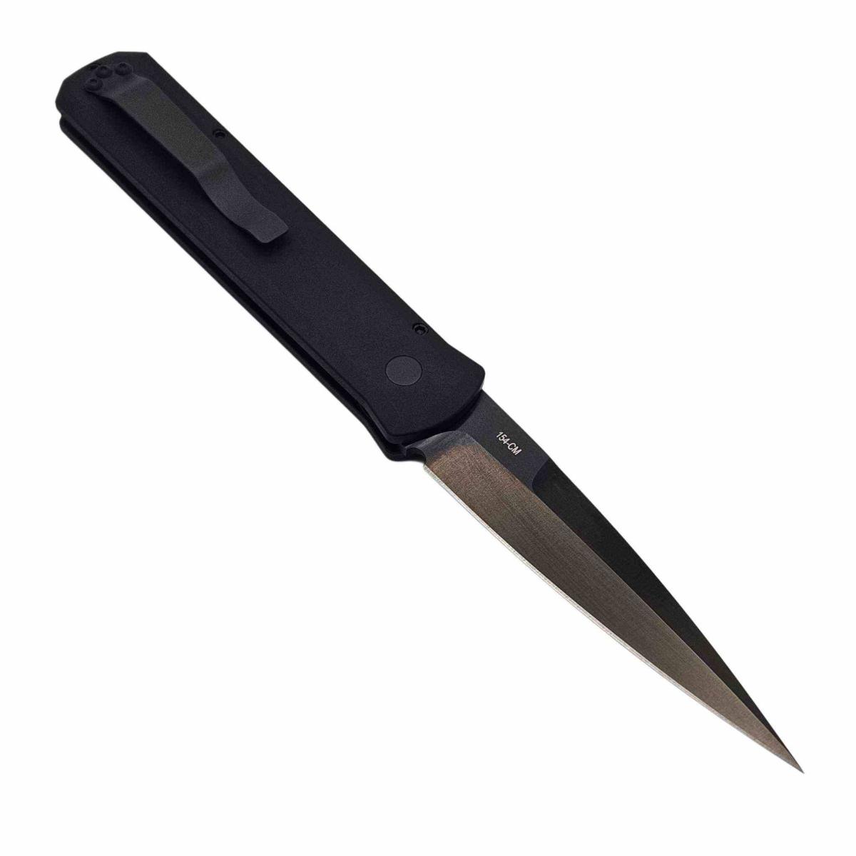 Le Pro-Tech Godfather 921 est un couteau automatique haut de gamme, inspiré du style stiletto italien, mais modernisé pour une performance tactique et une fiabilité mécanique irréprochable. Sa lame drop point effilée en acier 154CM est traitée avec un revêtement DLC noir (Diamond-Like Carbon), offrant une résistance extrême à l’abrasion, à la corrosion et aux reflets.