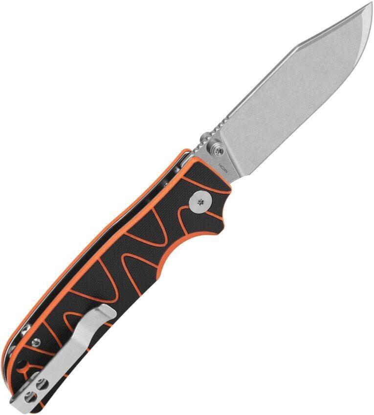 Descriptif : Le couteau QSP Kali est doté d'une lame clip point en acier 14C28N 59-61HRC avec une finition stonewash. L'ouverture d'une main est très fluide grace au pivot sur roulements à billes en céramique. Le manche est en acier & Black/Orange G10 avec un trou à l'extrémité pour le cordon de sécurité. En position ouverte la lame est sécurisée par un button lock. Le clip de poche permet un accès rapide au couteau.