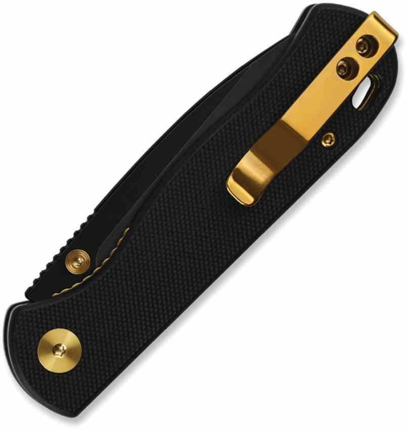 Le manche est composé de plaquettes en Black G10, un matériau composite extrêmement robuste offrant une excellente stabilité thermique et chimique. La texture travaillée du G10 assure un grip sécurisant dans toutes les conditions. Le verrouillage est assuré par un mécanisme Liner Lock fiable et précis. Il est équipé d'un clip de poche réversible en acier inoxydable pour un port profond (deep carry) et discret.