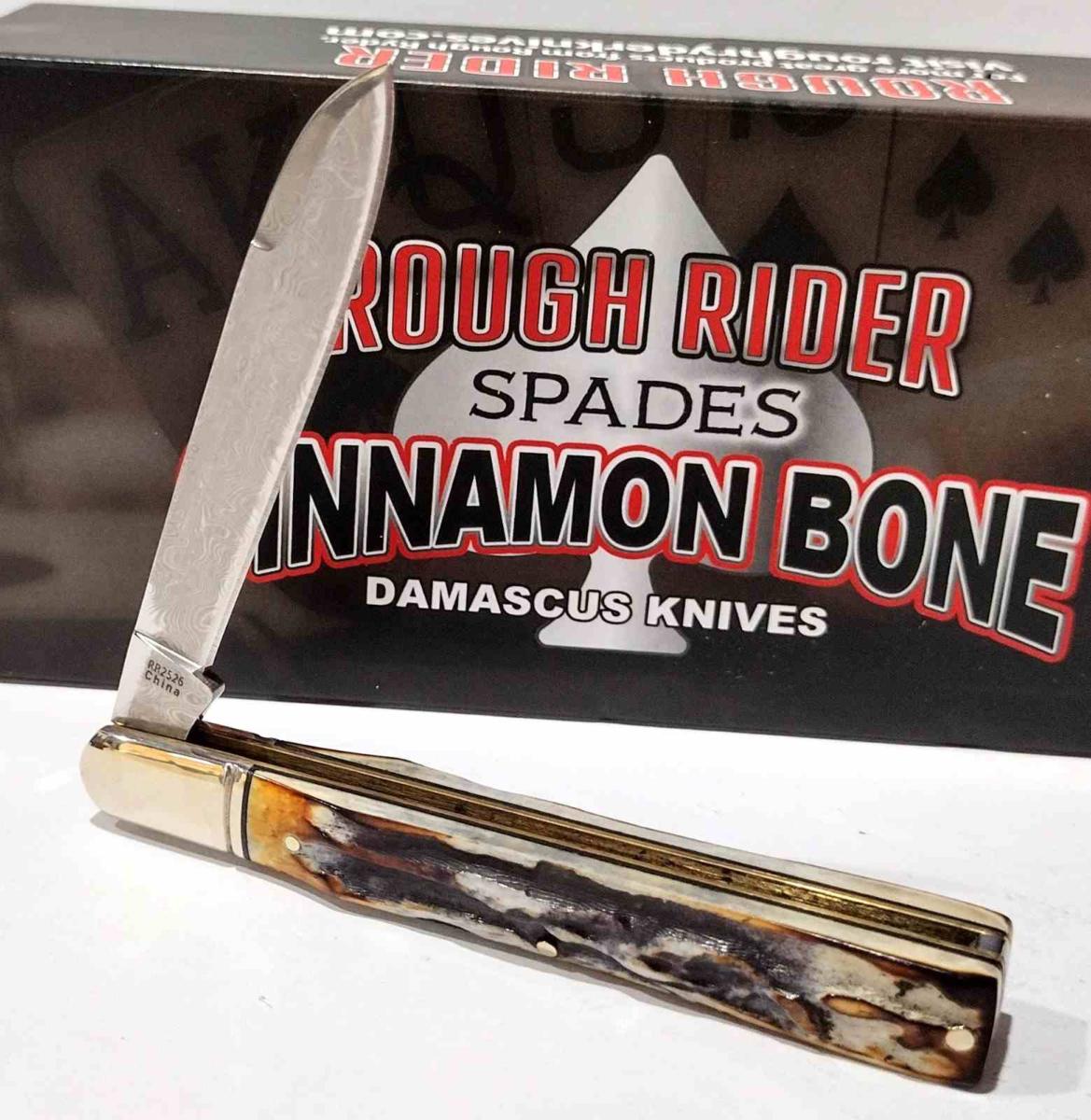 Le Rough Ryder RR2526 est un couteau pliant traditionnel au format Doctor’s Knife, inspiré des modèles médicaux historiques. Il est équipé d’une lame spear point de 64 mm en acier damas, avec un match strike pull pour une ouverture classique. Le motif damas est visible sur toute la surface, offrant un rendu esthétique unique et une bonne tenue de coupe.