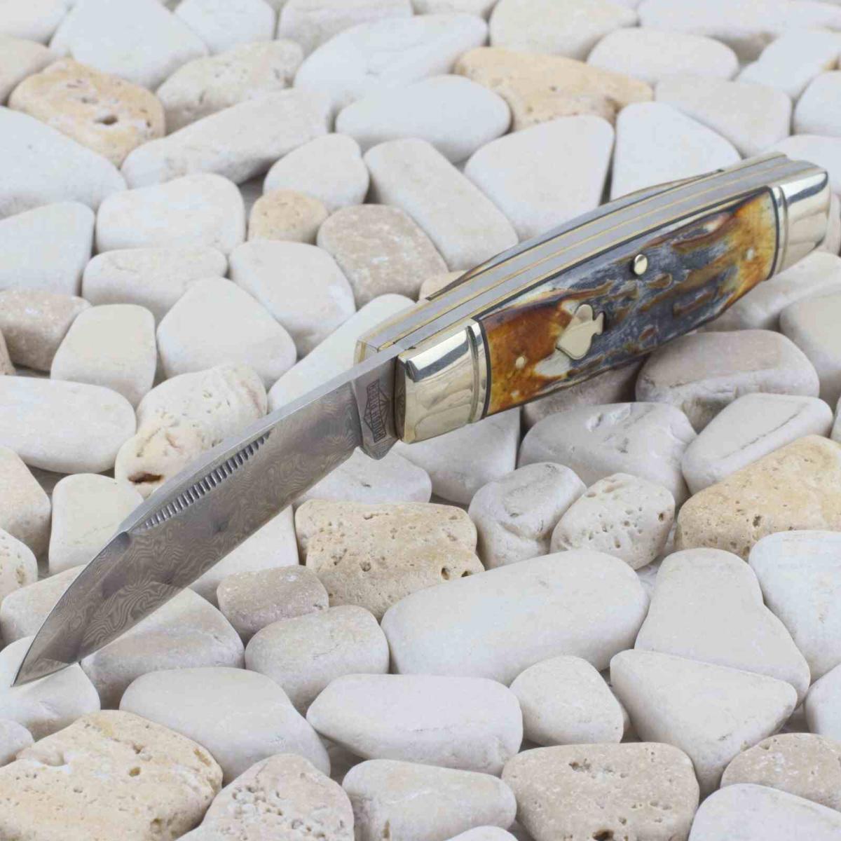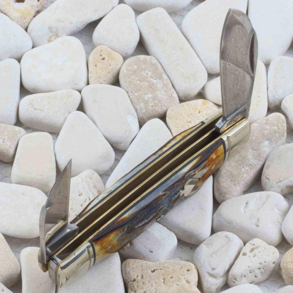 Le manche en os jigged cannelle apporte chaleur et texture, renforcé par des liners en laiton et des bolsters en nickel argenté. Un écusson spade incrusté signe l’authenticité de la série. Compact (9,2 cm fermé), il se glisse facilement en poche et séduit autant les collectionneurs que les amateurs d’EDC classique.