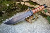 Descriptif : Le couteau Rough Ryder est doté d'une lame bowie en acier inox avec une finition blackwash. La garde et le pommeau son en acier et le manche en cuir. L'étui nylon permet le port à la ceinture.