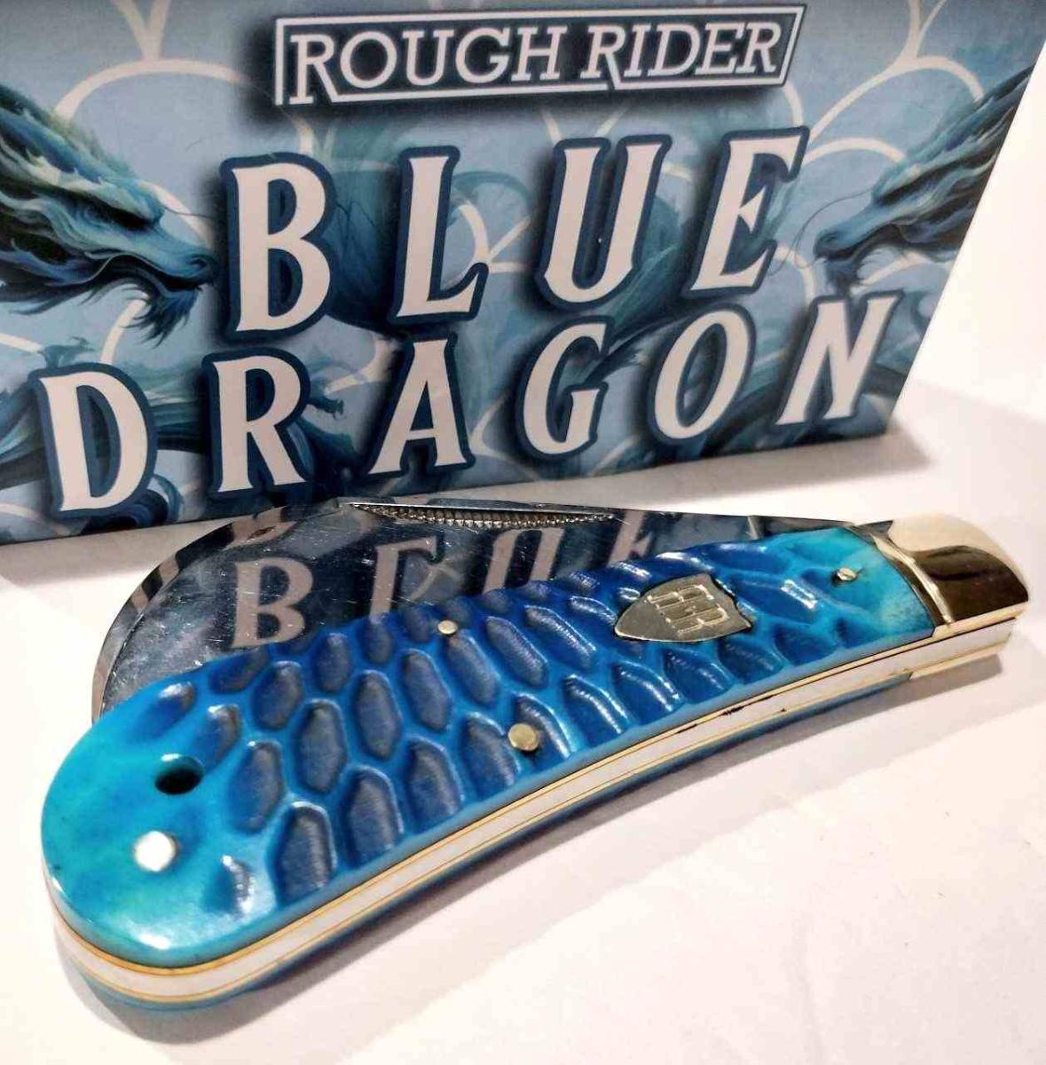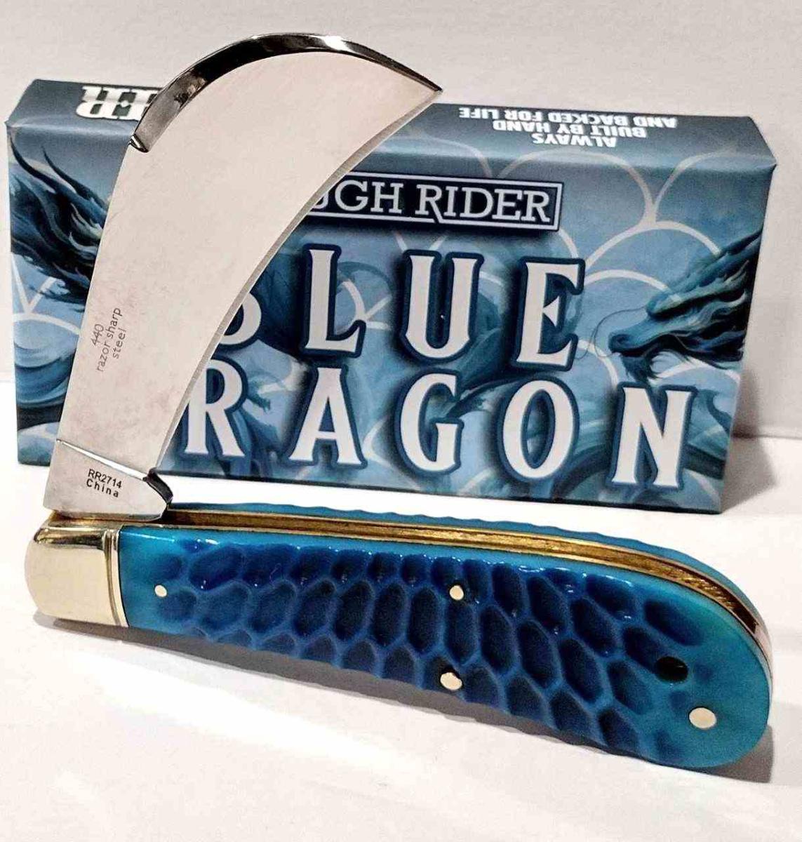 Le Rough Rider RR2714 Hawkbill Blue Dragon Bone est un couteau pliant traditionnel conçu pour les découpes en traction et l’EDC. Sa lame Hawkbill en acier inoxydable 440 de 7,6 cm (3"), finition satin, offre une coupe précise et durable.