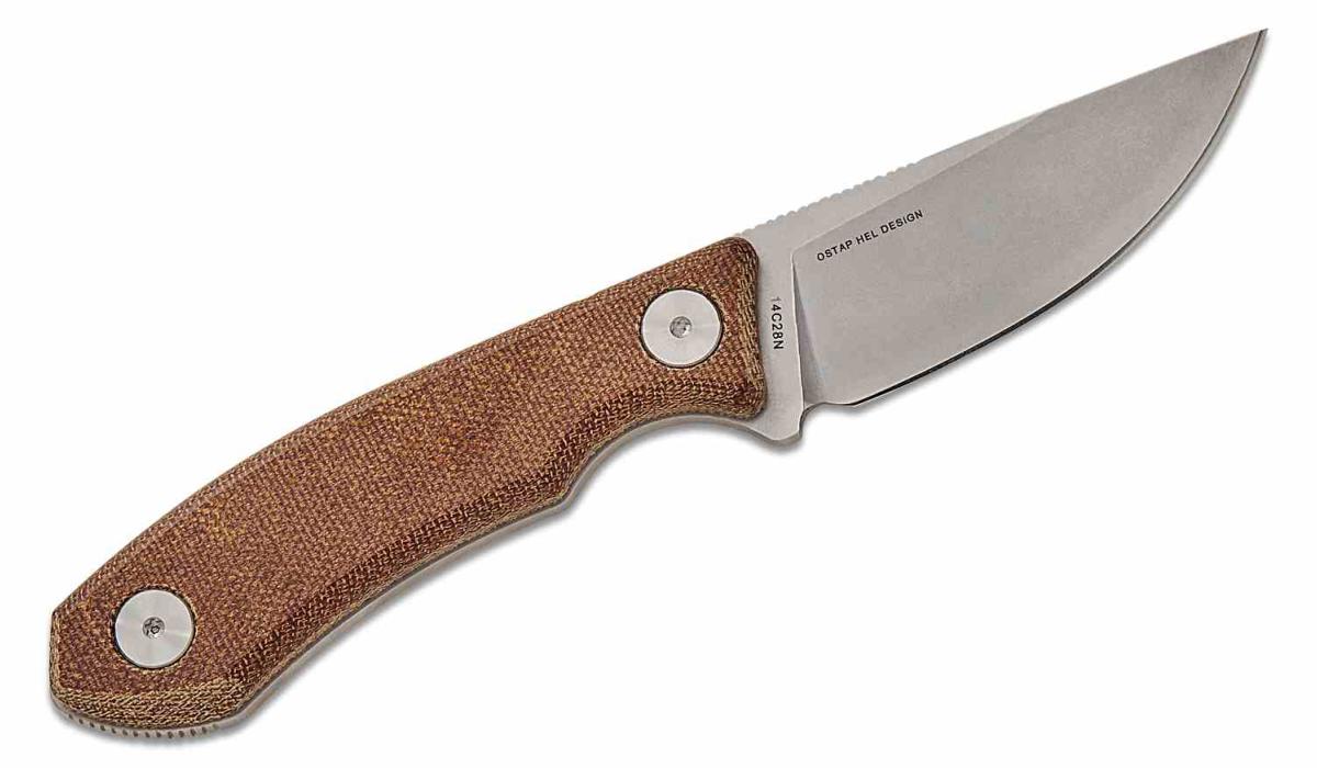 Prise en main Ergonomique : Le manche en Micarta naturel offre une adhérence exceptionnelle et développe une patine unique avec le temps, même en conditions de bushcraft humide.