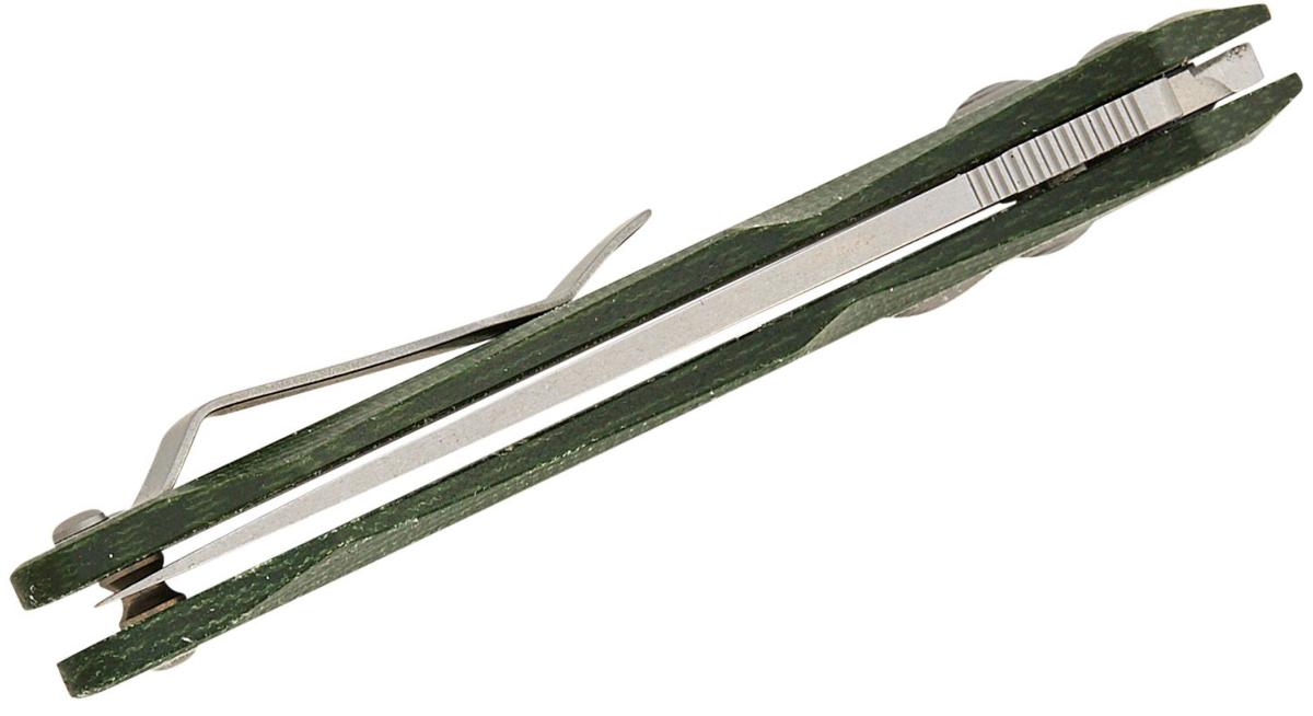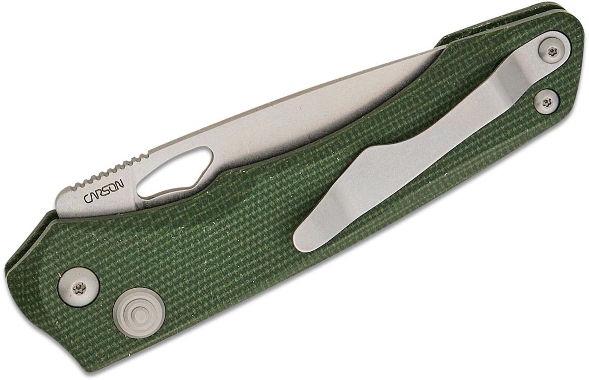 Découvrez le Real Steel Griffin Pro 7131GM, un couteau de poche conçu par Carson Huang. Ce modèle est équipé d'une lame en acier Sandvik 14C28N, offrant une excellente performance de coupe. La lame de type drop point, avec une finition satinée, mesure 9 cm de long et 3,3 mm d'épaisseur. Le manche en Micarta Green assure une prise en main confortable et sécurisée.
