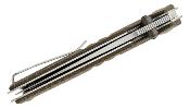 Descriptif : Le couteau Real Steel Sacra Green est doté d'une lame drop point plain edge en acier K110 D2 59-61HRC finition Stonewash. L'ouverture d'une main est possible avec le pouce. Le manche est en acier et en Green Micarta. En position ouverte la lame est sécurisée par un slider lock. Le clip permet un accès rapide au couteau.