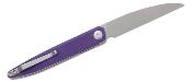 Descriptif : Le couteau Sencut Jubil Purple est doté d'une lame Wharncliffe en acier D2 59-61HRC avec une finition stonewash. L'ouverture d'une main est très fluide grâce au pivot sur roulement à billes en céramique. Le manche est en acier & en G10 purple. En position ouverte la lame est sécurisée par un linerlock. Le clip de poche permet un transport discret dans le pantalon & dans le sac.