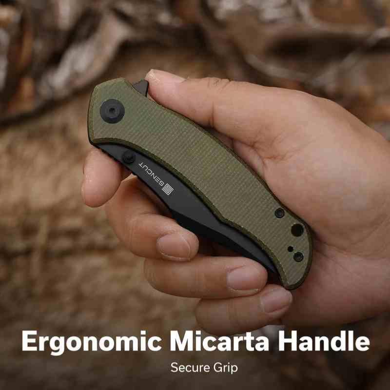 Le Sencut Tauron (référence S25060-3) revient dans une déclinaison résolument tactique et organique, combinant une lame sombre et un manche en Micarta. Ce couteau pliant est conçu pour ceux qui recherchent un outil robuste, capable de passer sans transition des tâches quotidiennes aux exigences du budcraft, de la chasse ou de la survie. Son design ergonomique offre une prise en main exceptionnelle grâce à ses contours travaillés et à la texture unique du Micarta.