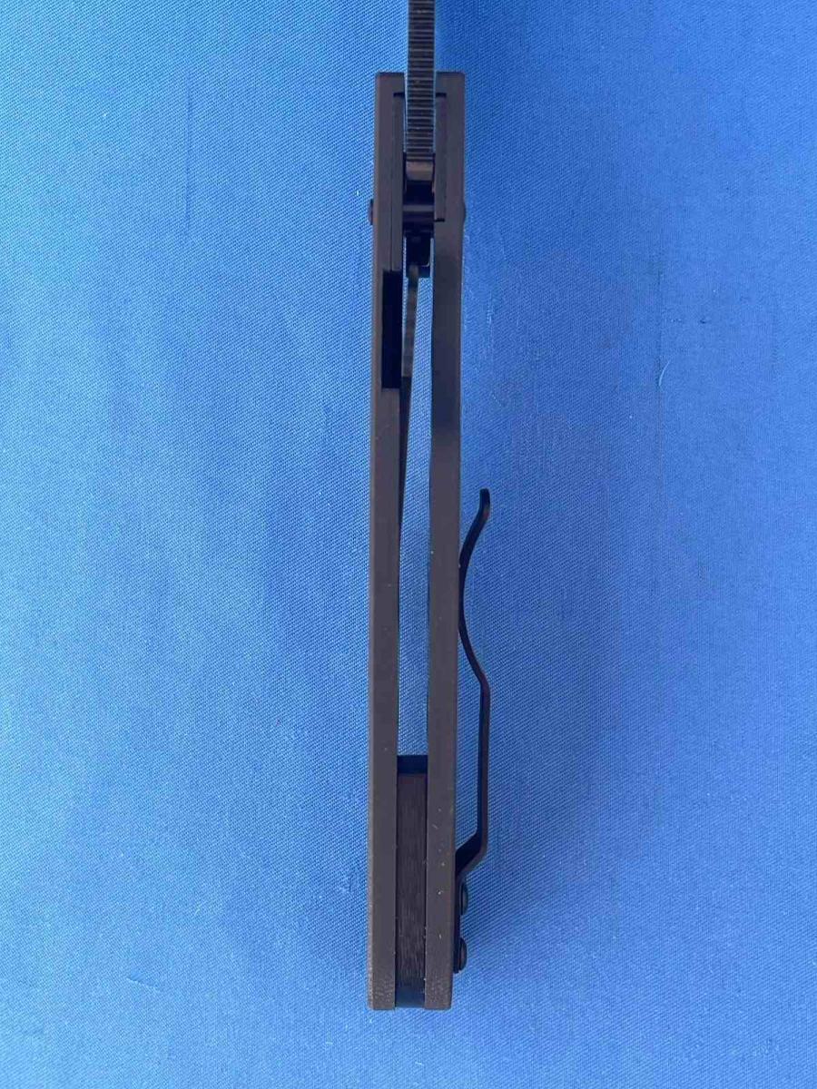 Sa lame Spear Point en acier CPM S30V de 9,3 cm (3.66"), finition DLC noir et tranchant denté, offre une excellente rétention de coupe et une résistance supérieure à l’usure. Le manche en G10 noir, monté sur liners acier squelettisés, assure robustesse et ergonomie.