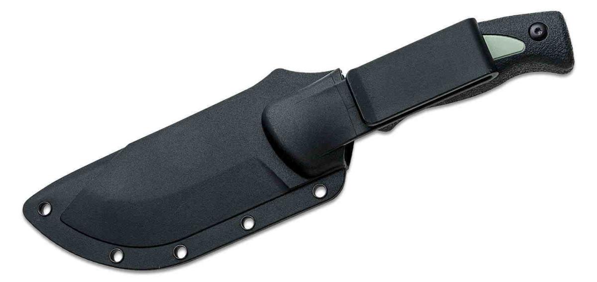 Descriptif : Le couteau de chasse Schrade Old Timer Trail Boss est doté d'une lame de type guthook en acier 8Cr13MoV 58-59HRC avec une finition satinée. De conception plate semelle le Trail Boss possède un manche en TPE noir & gris. L'étui en plastique permet le port à la ceinture.