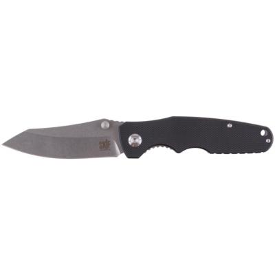 Descriptif : Le couteau SKIF Cutter Black est doté d'une lame tanto reverse en acier 8Cr13MoV 57-58HRC avec une finition stonewash. L'ouverture d'une main est possible avec le pouce. Le manche est en acier & en G10 Black. La securité linerlock assure un blocage parfait de la lame et le clip un accès rapide au couteau.