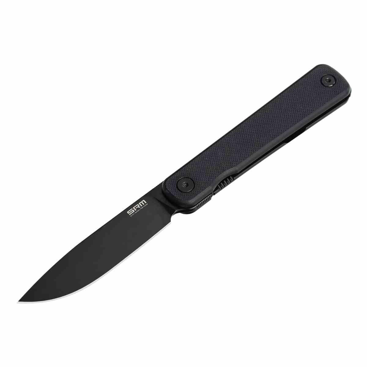 Le SRM Palfrey 135L-GB est un couteau pliant haut de gamme au design minimaliste, pensé pour l’EDC élégant et fonctionnel. Sa lame drop point de 83 mm est en acier inoxydable Sandvik 14C28N, réputé pour sa résistance à la corrosion, sa facilité d’affûtage et sa dureté HRC 57–59. La finition noire oxydée renforce son aspect tactique et discret.