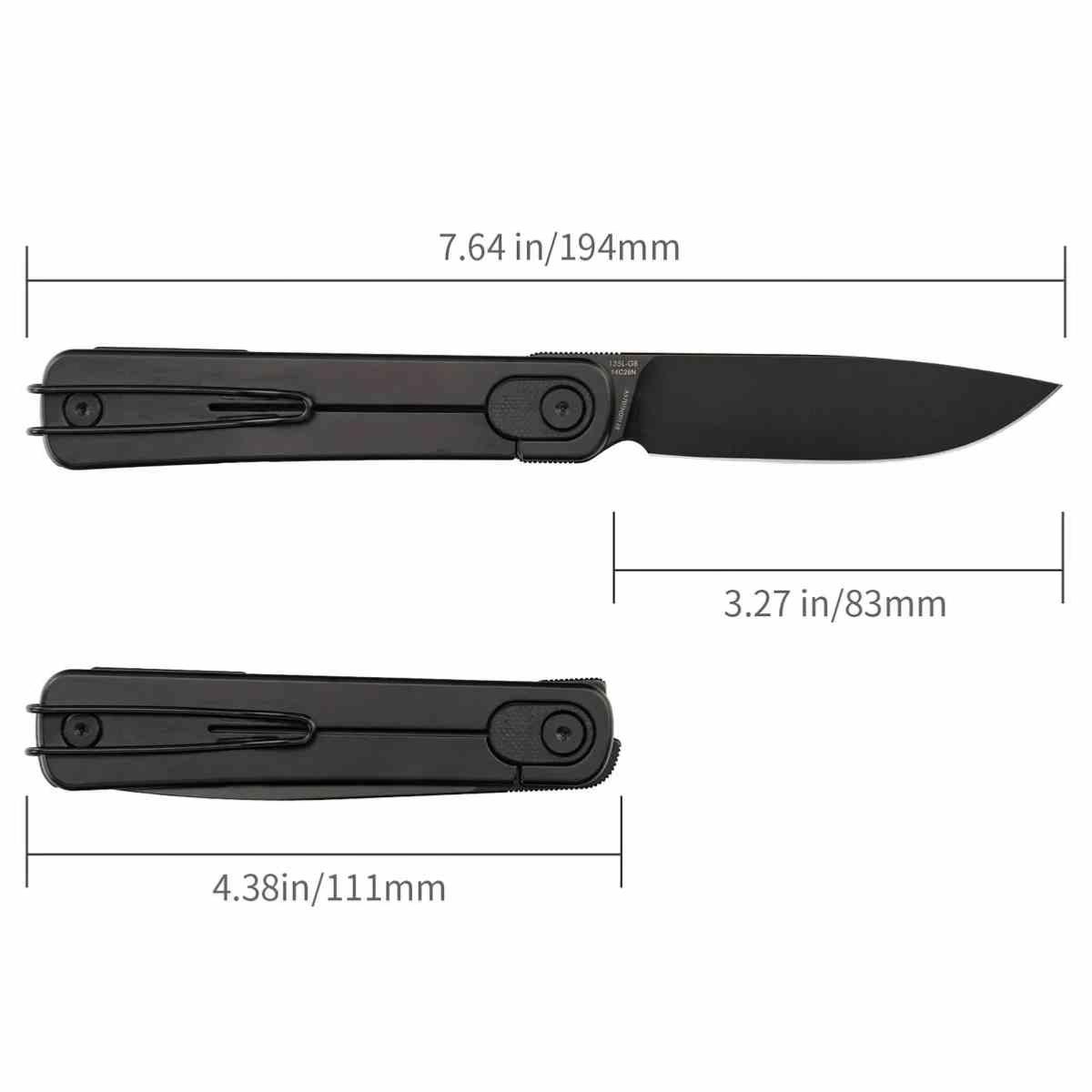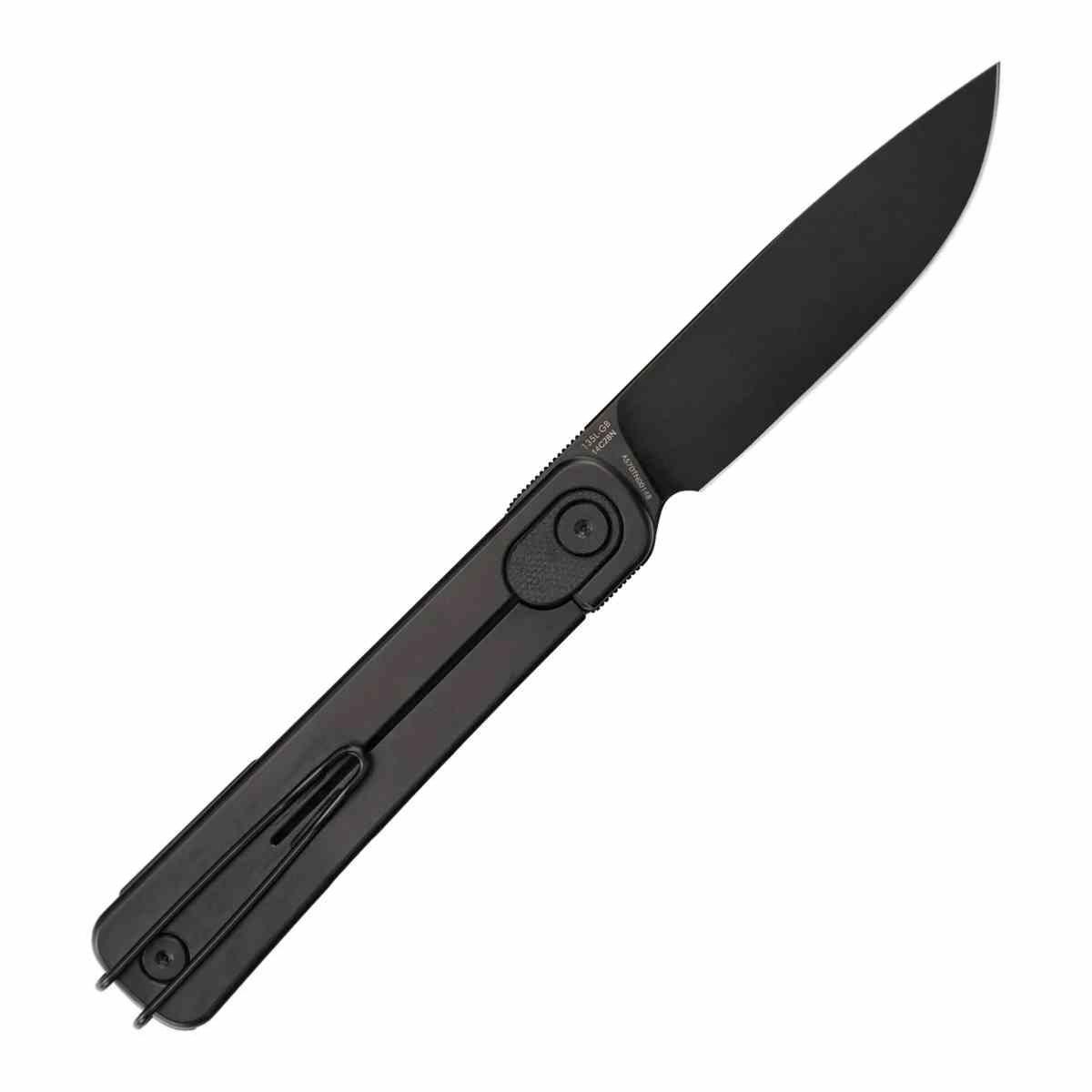 Le manche combine G10 noir texturé et plaques en acier inoxydable, offrant une excellente prise en main et une rigidité renforcée. Le système de verrouillage frame lock assure une sécurité fiable, tandis que le flipper invisible intégré permet une ouverture fluide et discrète. Le pivot à roulement céramique garantit une action rapide et silencieuse.