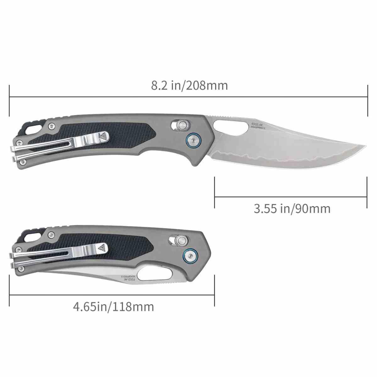 Le SRM Retriever 9203-AK est un couteau pliant haut de gamme conçu pour les activités outdoor, la chasse et l’EDC exigeant. Il se distingue par sa lame clip point de 90 mm en acier laminé 140Cr, offrant une dureté de 61–63 HRC et des performances comparables à l’acier S35VN. La finition bead blast renforce son aspect utilitaire et discret.