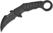 Descriptif : Le couteau Smith&Wesson Karambit Extreme Ops est doté d'une lame Hawkbill en acier 8Cr13MoV 58-59HRC avec une finition black. L'ouverture d'une main est très rapide grace au ressort qui déploie la lame. Le manche est en acier & G10 avec un anneau en bout de manche. En position ouverte la lame est sécurisée par un linerlock. Le clip de poche permet un accès rapide au couteau.