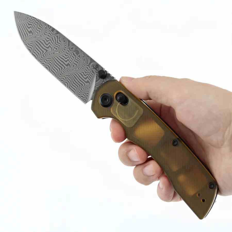 Le manche est réalisé en PEI Ultem ambre translucide, un polymère technique haut de gamme reconnu pour sa résistance thermique et mécanique. Le système Crossbar Lock assure une sécurité fiable et ambidextre, tandis que le clip de poche tip‑up permet un port pratique.