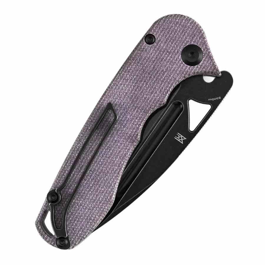 Le Tenable Bombur T1054A6 est un couteau pliant massif et robuste, conçu pour les utilisateurs recherchant puissance, ergonomie et fiabilité. Sa lame de 90 mm en acier D2, finition blackwash, offre une excellente tenue de coupe et une résistance élevée à l’usure. Le manche en micarta violet assure une prise en main sûre, même en conditions difficiles, tandis que le mécanisme linerlock garantit un verrouillage solide. Inspiré par le design Midgards Messer, le Bombur combine une construction imposante, une action fluide et une esthétique marquée pour un EDC prêt à affronter les tâches les plus exigeantes.