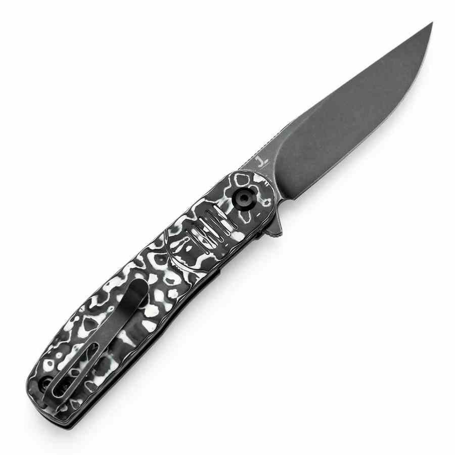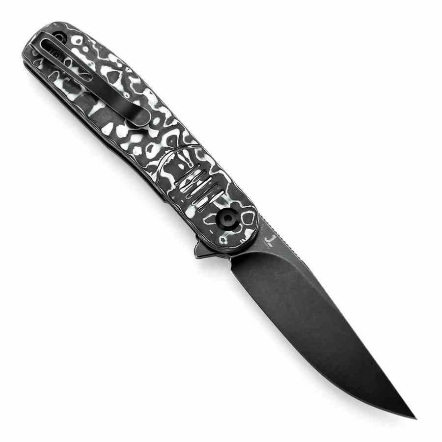 Manche carbone noir/blanc : esthétique moderne, poids réduit