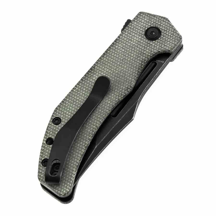 Le Tenable Orion B1089A3 est un couteau pliant EDC compact et ergonomique, conçu par le coutelier JB Stout pour le marché de la production. Inspiré du Squirrel Master XL, il conserve des lignes dynamiques tout en intégrant un flipper fluide, un liner lock robuste et une lame clip point en acier 14C28N finition blackwashed avec fuller. Le manche en Micarta vert texturé offre une excellente prise en main et une esthétique sobre et tactique.