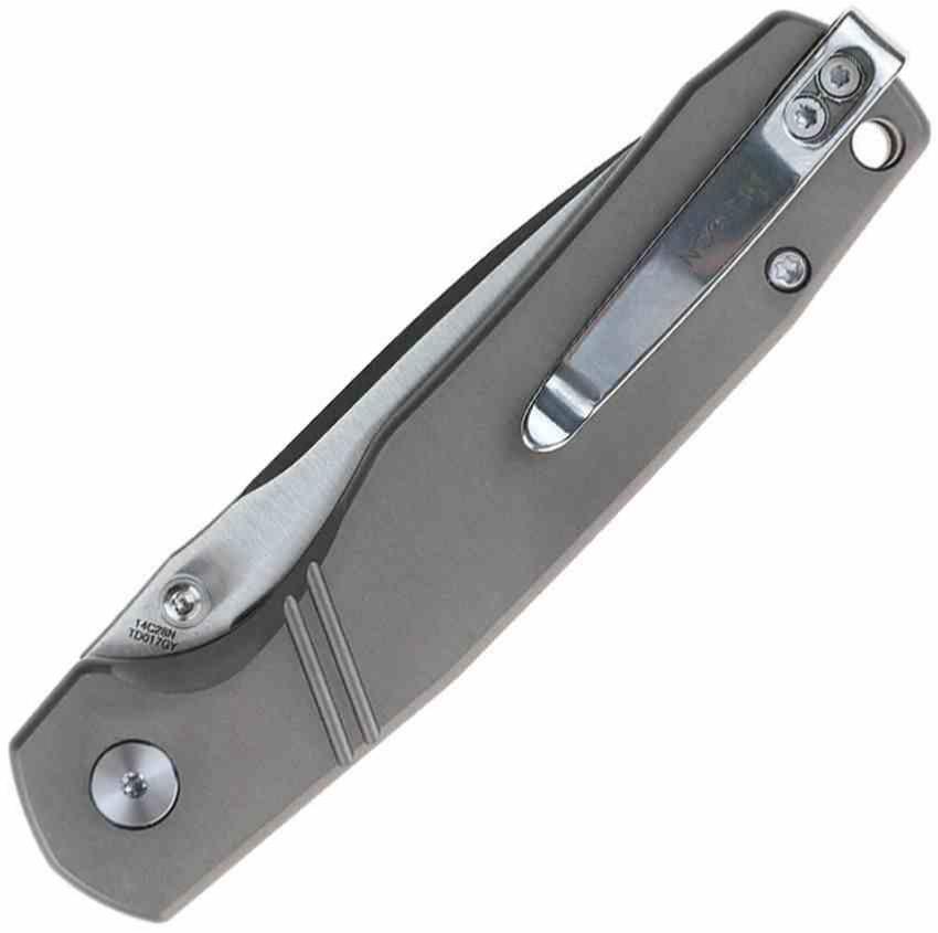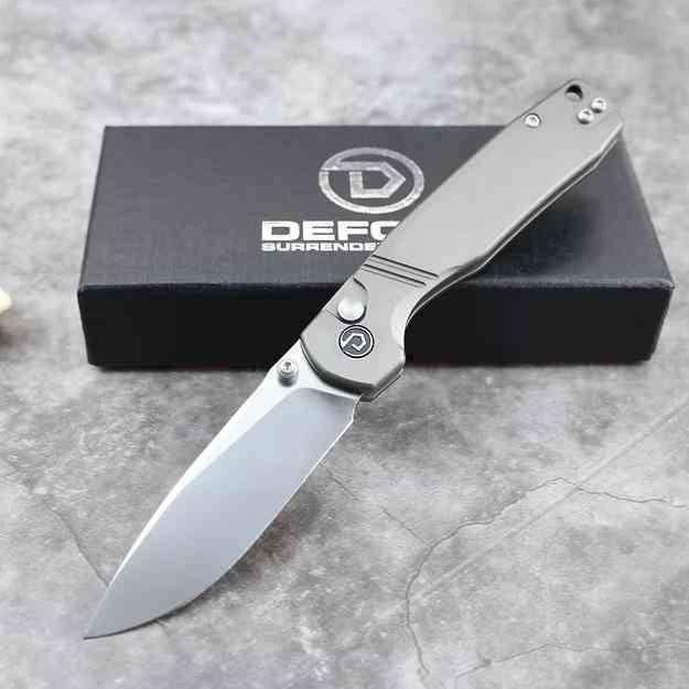 Le Defcon Delta TD017GY est un couteau pliant tactique au design sobre et fonctionnel. Il combine une lame drop point en acier Sandvik 14C28N avec une finition satinée, montée sur un manche aluminium anodisé gris. L’ouverture se fait via un thumb stud ambidextre, et le verrouillage est assuré par un button lock fluide et sécurisé. Le clip de poche permet un port discret en EDC.
