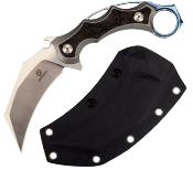 Descriptif : Le couteau Defcon Karambit Jungle est doté d'une lame claw en acier D2 59-61HRC avec une finition satinée. De conception plate semelle le karambit possède un manche en titane & fibre de carbone avec un anneau en bout de manche. L'étui kydex permet le port à la ceinture.