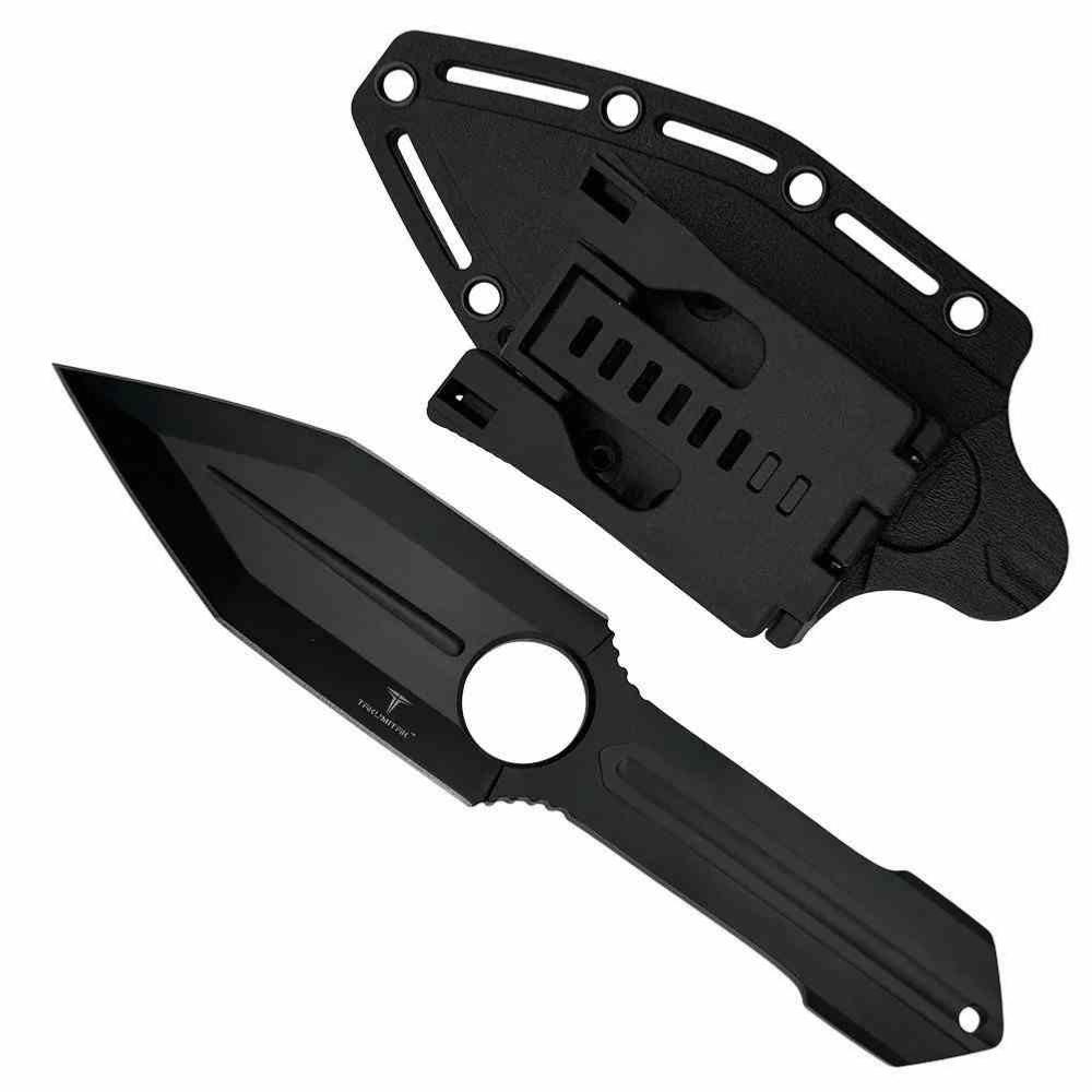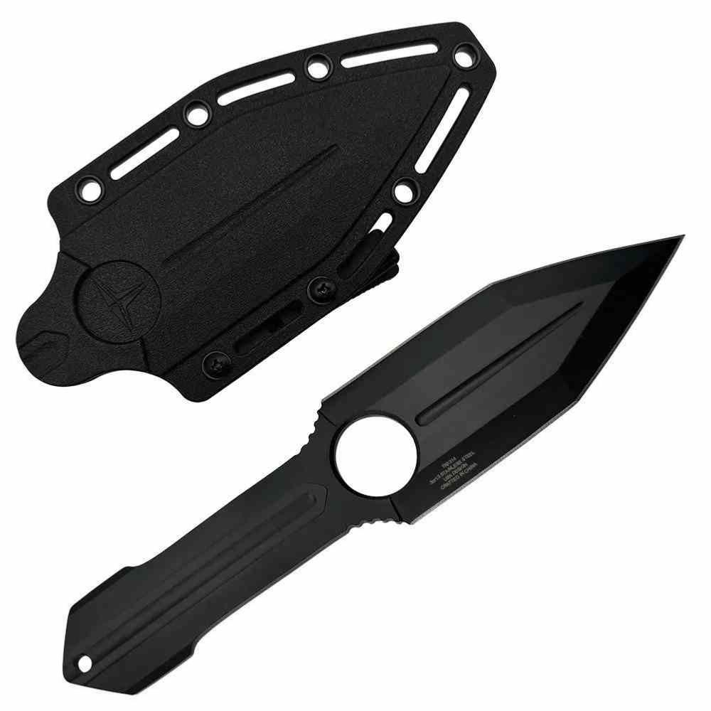 Le Takumitak TKF314 Steel Rain est un couteau fixe robuste en construction monobloc, concu pour les usages intensifs. Sa lame spear point double tranchant en acier 3Cr13 avec revetement black oxide offre une bonne resistance a la corrosion. Le couteau est full tang, dispose d’un lanyard hole et est fourni avec deux etuis FRN (noir et coyote brown) compatibles MOLLE pour un port polyvalent.