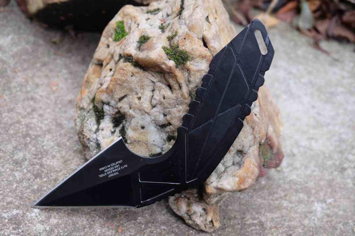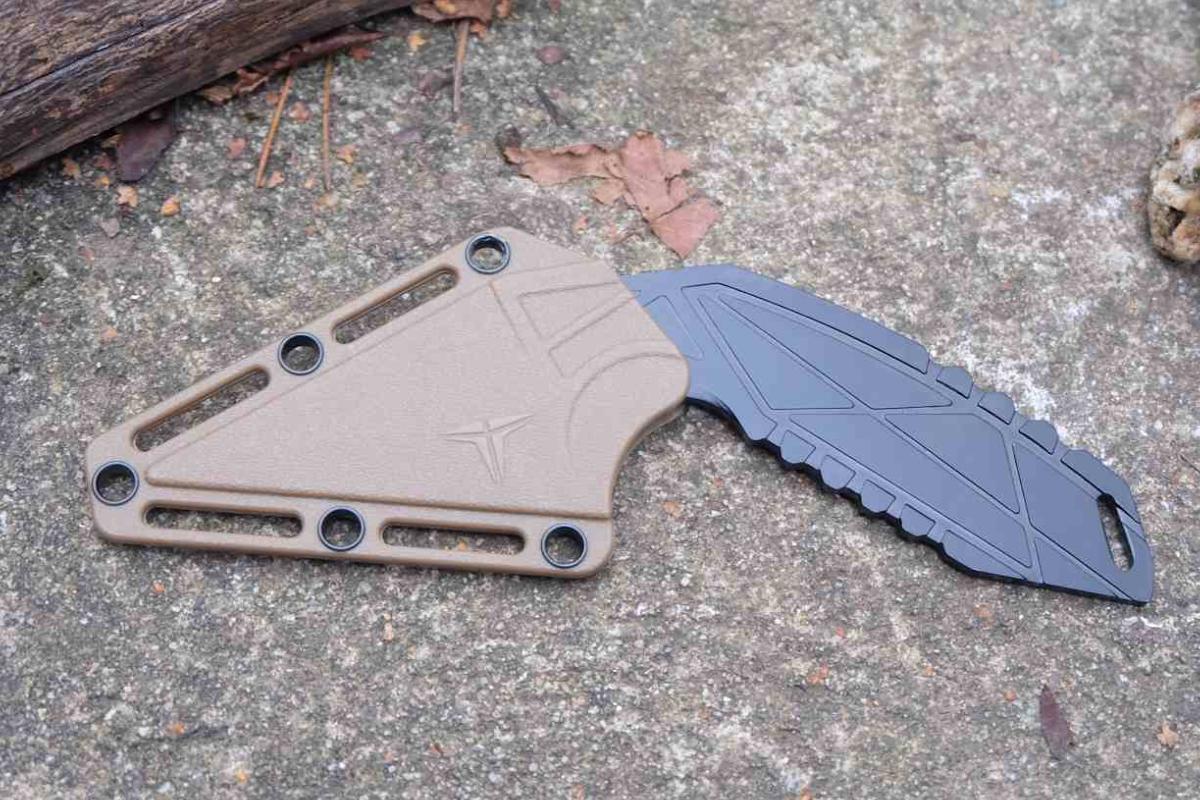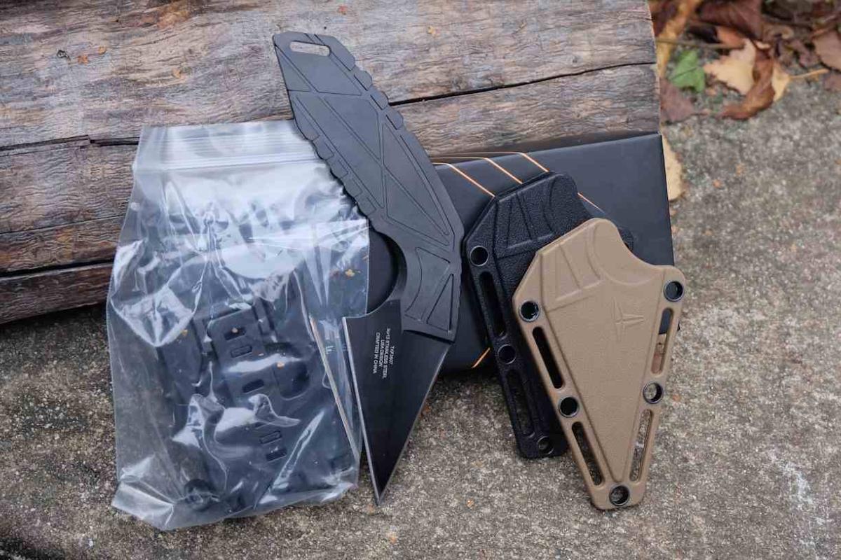 La finition black oxide protège la lame et lui donne un aspect tactique. Le manche en acier inox noir assure robustesse et légèreté. Le couteau est livré avec deux étuis :