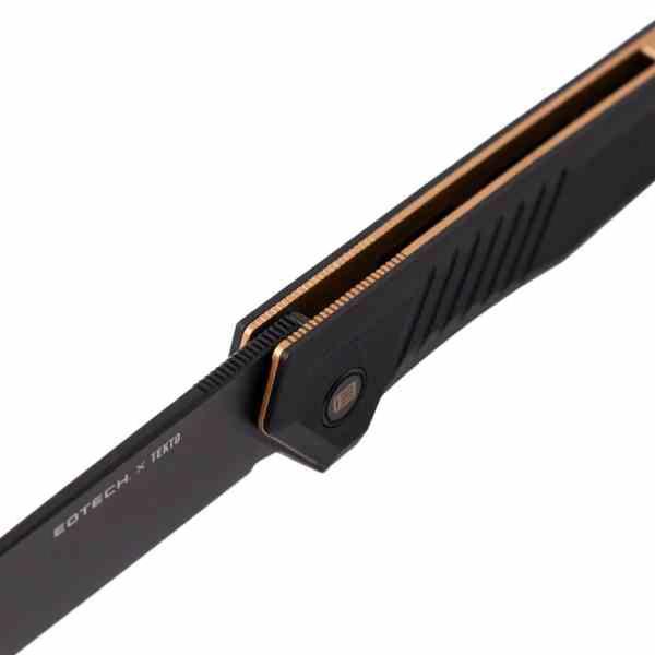 • TKTF1GBKBKEO EOTECH x Tekto F1 Alpha – Couteau pliant Liner Lock Lame Acier D2 Black Titanium Manche Black G10 - Livraison Gratuite