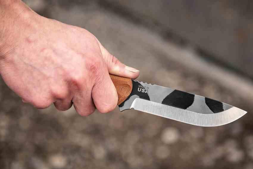 Design Urban Camo : Une esthétique tactique rare pour un couteau de bushcraft traditionnel.