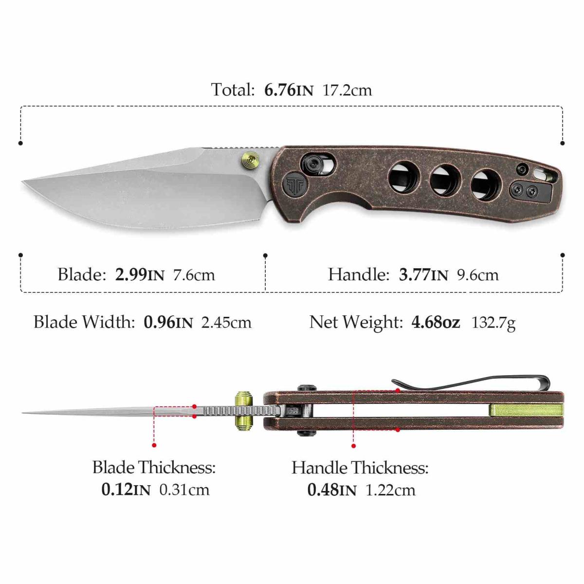 Options : Thumb Stud, Pocket Clip, Rope Hole.