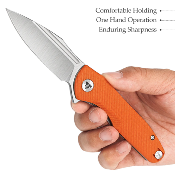 Matériau du manche : G10 orange, offrant une excellente prise en main et une visibilité accrue