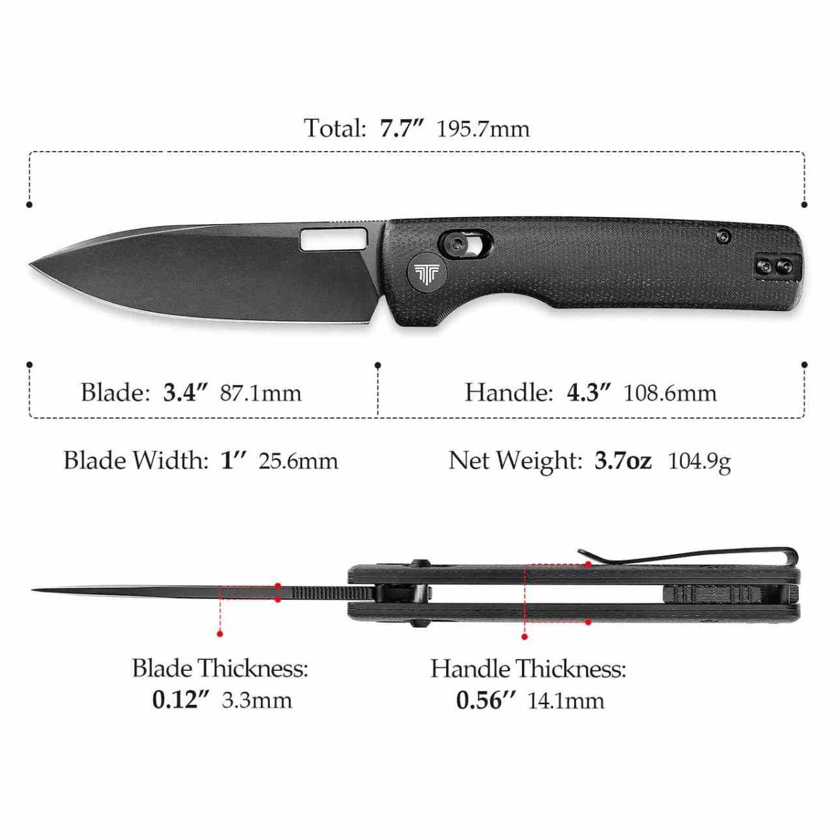 Le Trivisa Sabretooth BM est un couteau pliant EDC tactique, conçu pour les utilisateurs à la recherche d’un outil robuste, fluide et élégant. Sa lame drop point recurve en acier Sandvik 14C28N est traitée par cryogénie sous vide pour une dureté de 60 ±2 HRC, et bénéficie d’une finition black stonewashed qui allie discrétion, résistance aux rayures et look tactique.