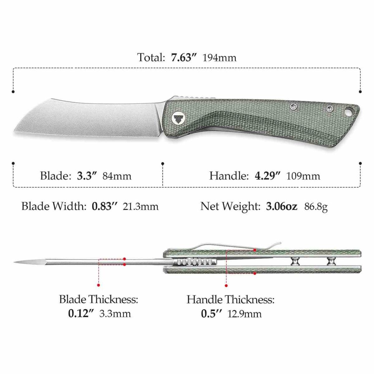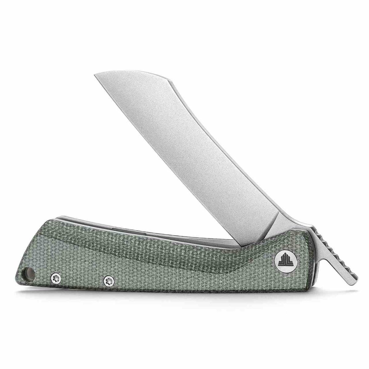 Grip en Green Micarta : Un manche robuste, antidérapant et esthétique avec son coloris vert olive très typé outdoor.
