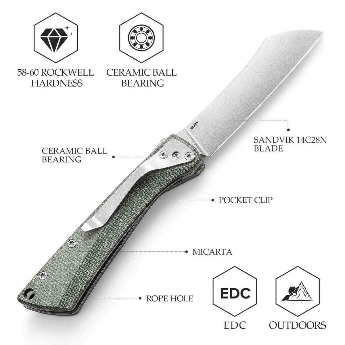 Le Manche en Green Micarta apporte une touche outdoor authentique et garantit un grip infaillible, même avec les mains mouillées ou gantées. Le Micarta est un matériau composite quasi indestructible qui se patine avec le temps, rendant chaque couteau unique. Contrairement aux modèles traditionnels, le Norma-04G intègre un verrouillage Liner Lock pour une sécurité d'utilisation totale et un clip de poche en acier pour un port quotidien pratique (EDC).