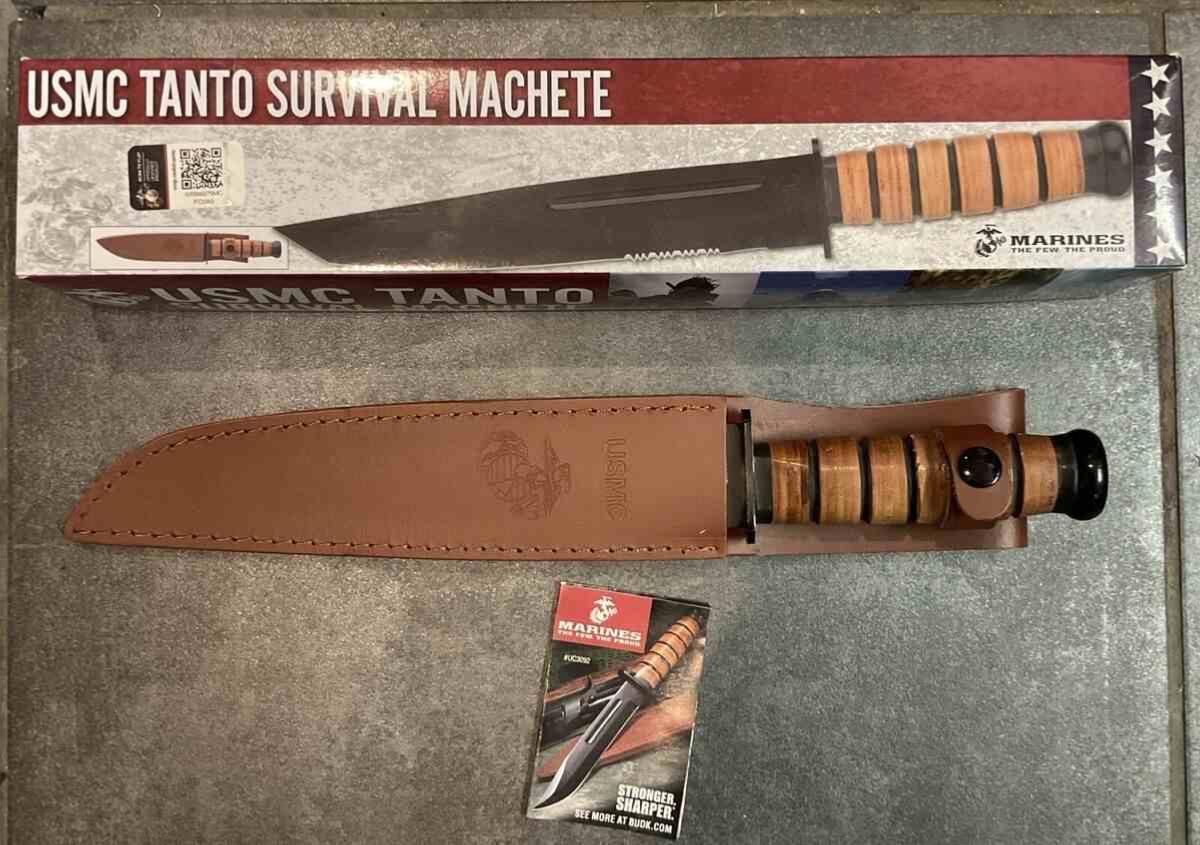 UC3476 USMC Tanto Survival  | Machette Tactique | Lame Inox 235 mm | Manche Cuir Empilé | Étui Cuir - Livraison Gratuite